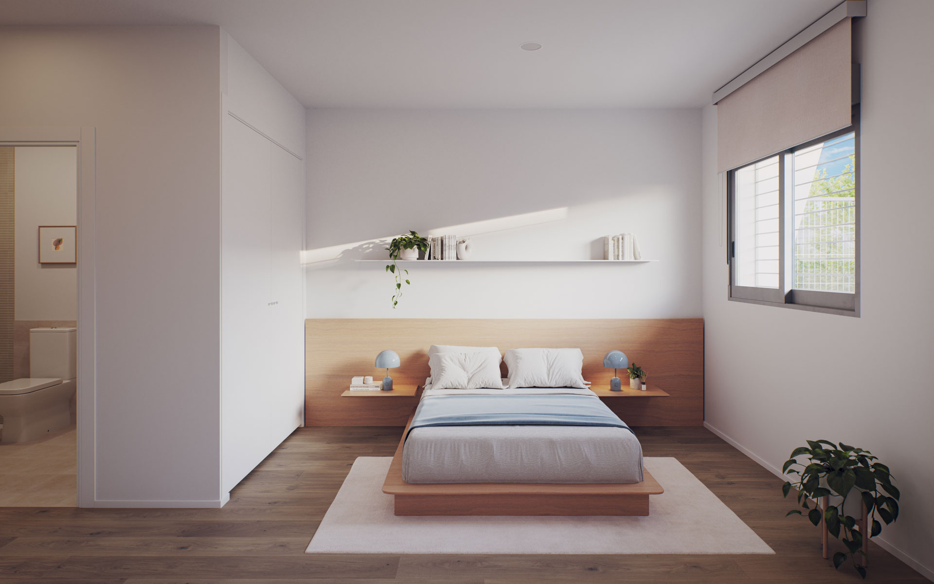 En la planta superior, el dormitorio principal con baño en suite y dos habitaciones adicionales crean un espacio pensado para el descanso.
